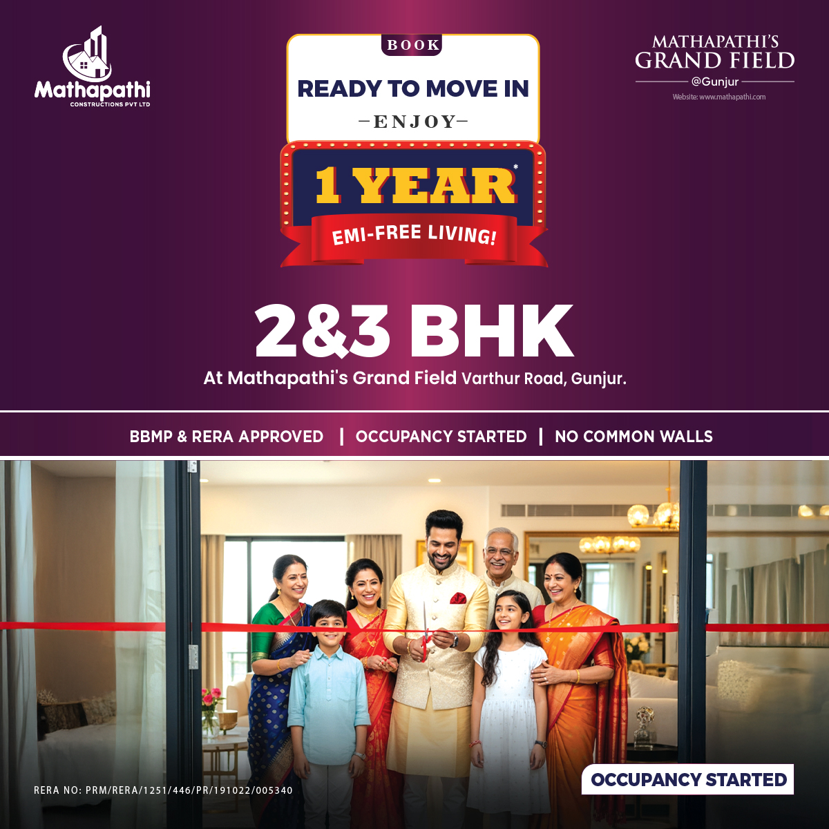 Mathapathi's Grand field, an emblematic masterpiece, proudly stands amidst the tranquil setting of Gunjur. Conveniently reachable via road, the project boasts an ideal location facilitating easy access to key areas of Bangalore such as Silk Board, Bellandur, HSR, Sarjapur Road, Marathahalli, and Varthur. Additionally, it enjoys proximity to significant IT hubs including Whitefield and Kadubeesanahalli. Located in Gunjur, Bangalore, the Mathapathi's Grand Field is a thoughtfully planned one, equipped with all amenities for a comfortable living. The property spreads over an area of 2 Acres. There are in total 126 units in this project. A professionally conceptualised residential property, this state-of-the art project is visually appealing. The residential property is ready to move in. The project offers an array of property choices such as flats to suit every individual's need.