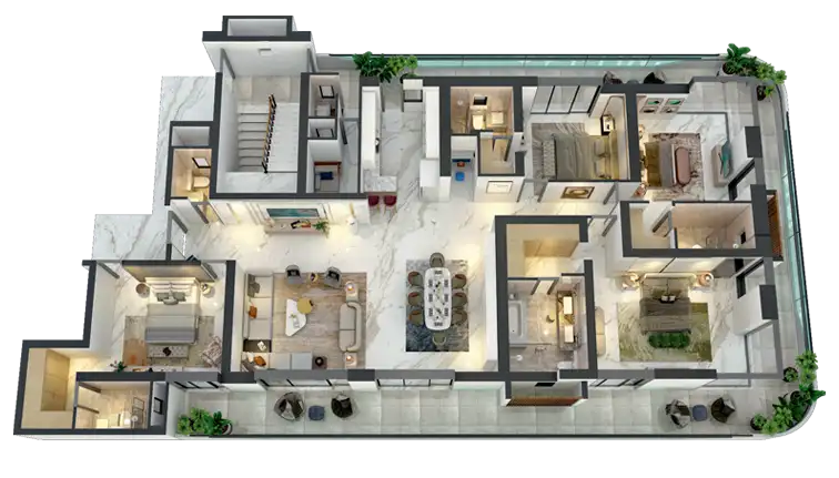 Living, Dinning, Kitchen, Balcony & Utility Areas Flooring with 20mm Granite & 4" Skirting
